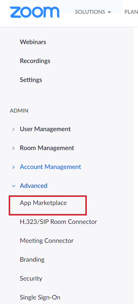 a) Go to the Zoom admin panel and click on Advanced>App Marketplace (screenshot a).